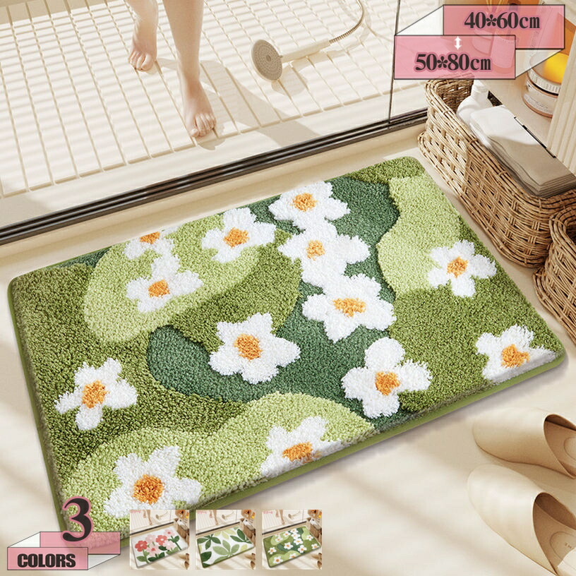 お風呂 ふわふわ ラグカーペット マイクロファイバー 滑り止め 足ふきマット 吸水速乾 快適 かわいい やわらか キッチン バスマット 花柄 デザイン 吸水性 速乾性 カーペット 浴室 おしゃ 多用途