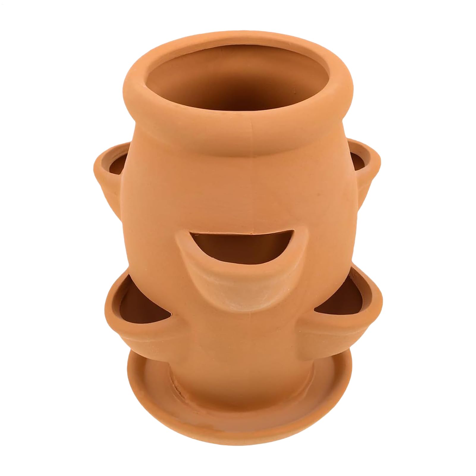 ストロベリープランター テラコッタ 植木鉢 イチゴ栽培バッグ 垂直に積み重ね可能なガーデンコンテナ | 通気性のある粘土素材 バルコニー テラス 屋外用 排水穴付き