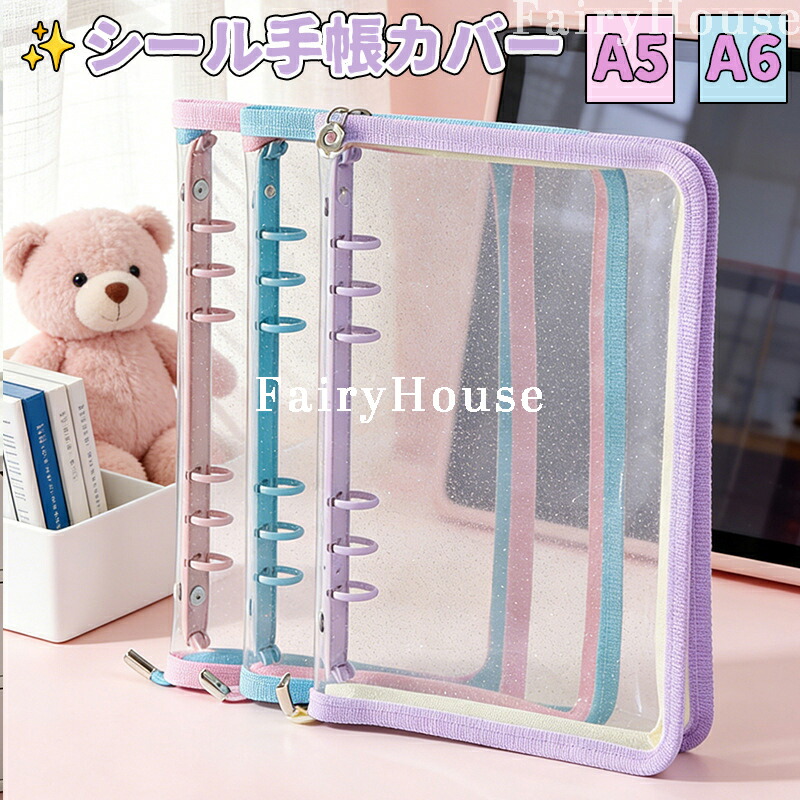 デコ シール帳 A5 A6透明バインダー 6穴リング ミニ手帳 コンパクト手帳 スケジュール帳 PVCカバー 透明 ファスナー付き ジッパー手帳 持ち運び便利 防水 グ シール収納