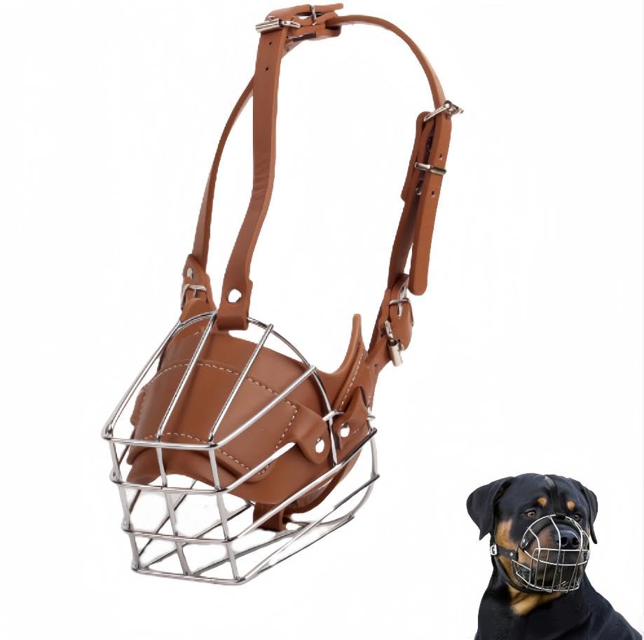 ジャーマンシェパード、ドーベルマン、ロットワイラーや他の中型犬&大型犬のための調節可能なトレーニング金属レザー犬の口輪は、訓練、警察サービスや日常の使用のために良い、噛む、吠えると食べる防ぐ
