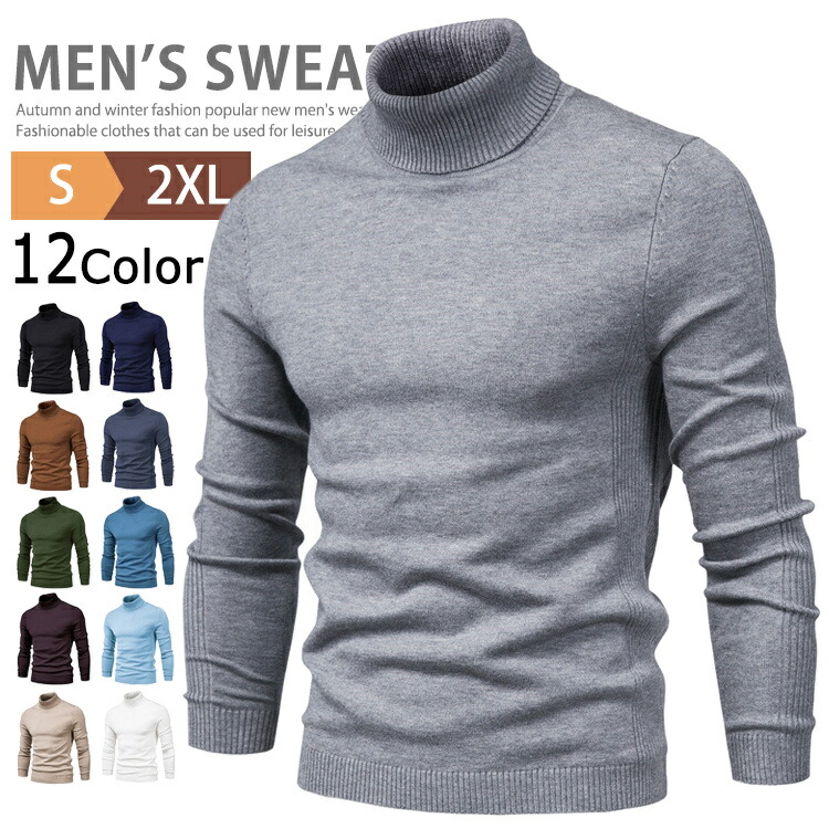 ~3 ハイネックセーター リブニット 紳士服 暖かい 防寒着 無地