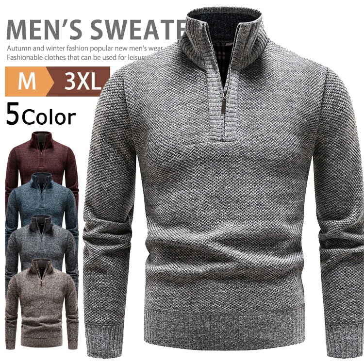 秋 冬 長袖 セーター ハーーフジップ 立襟 メンズ カジュアル おしゃれ シンプル 無地 上品 おすすめ