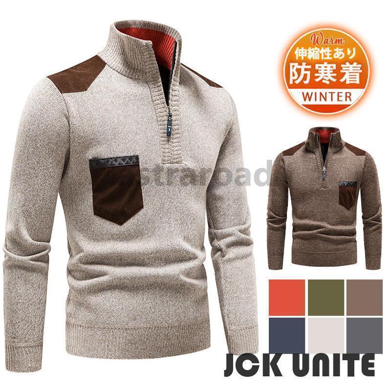 裏ボア ニットセーター メンズ 立ち襟 ハーフジップ ニット モックネックシャツ あったかインナー 部屋着