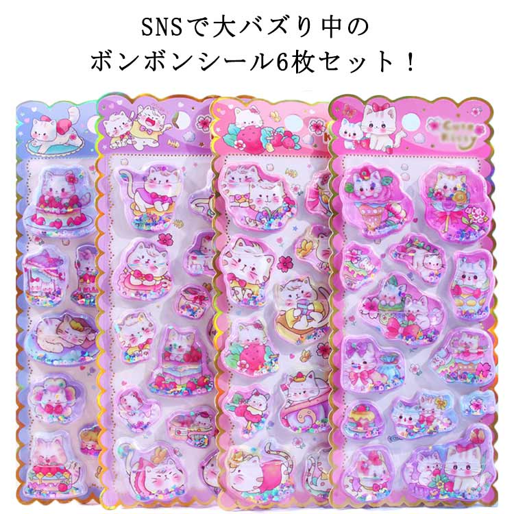 6枚セット 水入りシール シャカシャカシール 香り付き デコレーションシール ぷくぷく シール ウォーターシール 3Dシール 立体シール ぷっくりシール 精巧な柄 DIY 個性的 かわいい 手帳用装飾