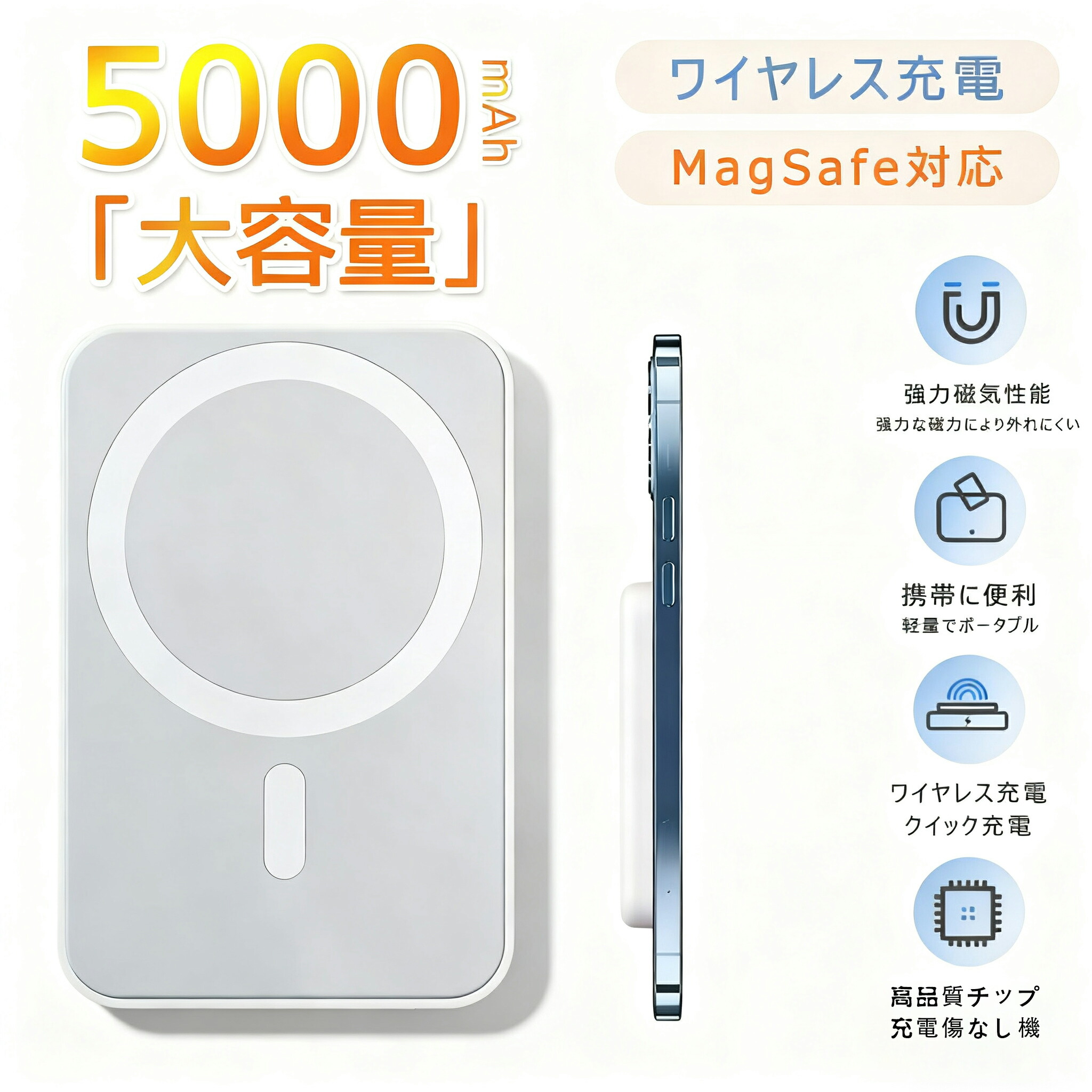 モバイルバッテリー MagSafe 5000mAh ワイヤレス マグネット 充電器 磁気 大容量 マグネットセーフ 小型 急速充電 スマホバッテリー モバ充 マグセーフiPhone15 iPh PSE