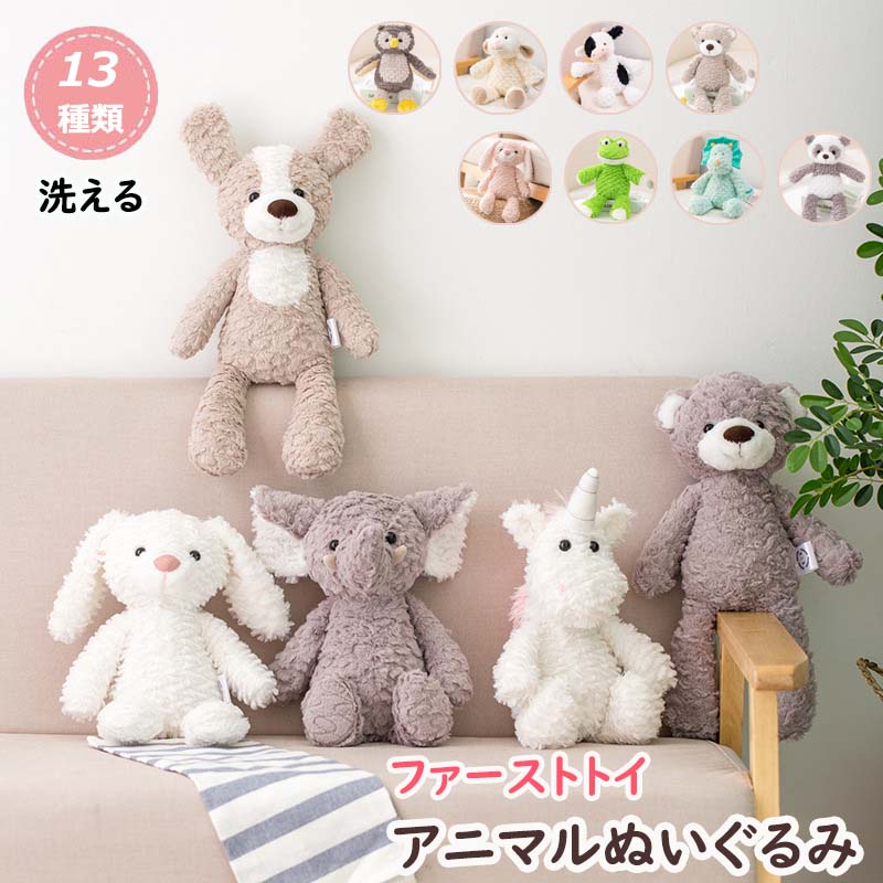 ファーストトイ ぬいぐるみ 洗える ベビー 新生児 男の子 女の子 ソフトトイ アニマル うさぎ くま ユニコーン パンダ フクロウ ヒツジ いぬ 犬 カエル ゾウ やわらかい かわいい 癒し 動物