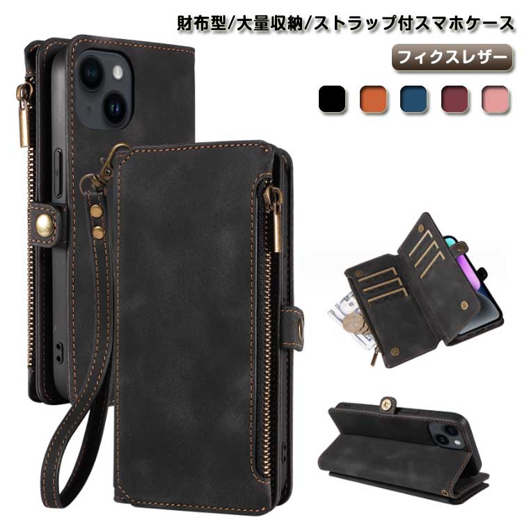 15ケース7823財布型ケース手帳型ケース財布がわり送料無料財布型ケースファスナーポケットストラップ付きアイフォン保護カバーレザー生地