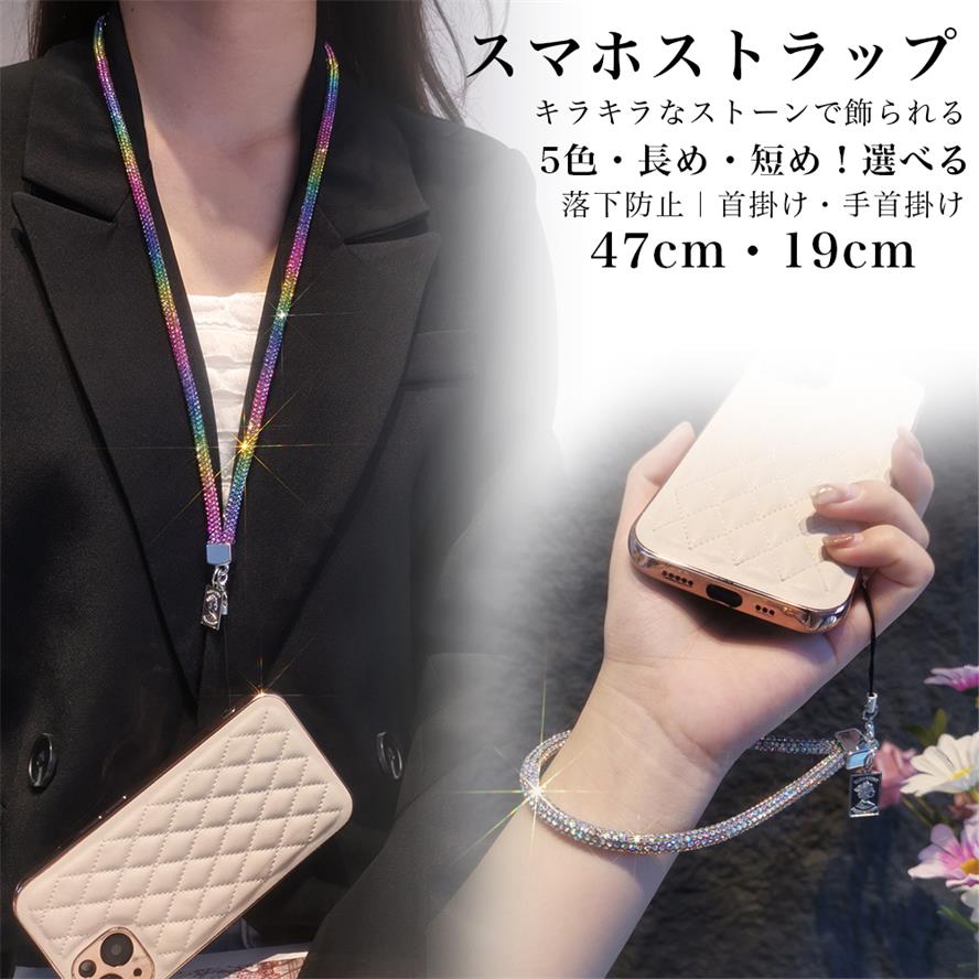 スマホストラップ スマホストラップショルダー スマホショルダー 5色 キラキラ ストーン 長め 短め 携帯ストラップ 首掛け 斜め掛け 手首掛け ネックストラップ ショルダーストラップ 女性 斜めがけ