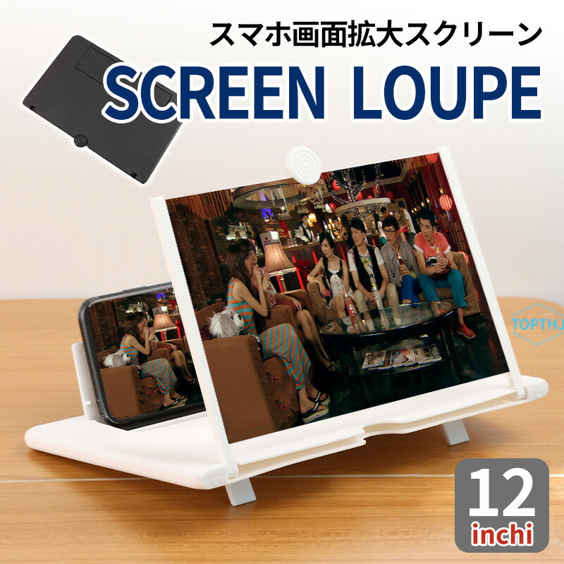 スマホスクリーン拡大鏡 12インチ 白 黒 スマホ 拡大鏡 スクリーンアンプ スマートフォン用ズームスクリーン 画面拡大 拡大レンズ ルーペスタンド