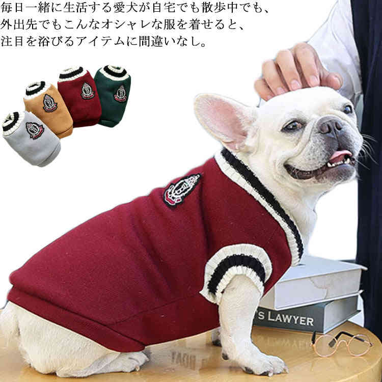 厚手 ドッグウェア ニットベスト 犬 セーター あたたかい 秋服 冬服 犬服 服 暖かい 4色展開 小型犬 中型犬 大型犬 裏起毛 可愛い スクール風 ペットウェア 部屋着