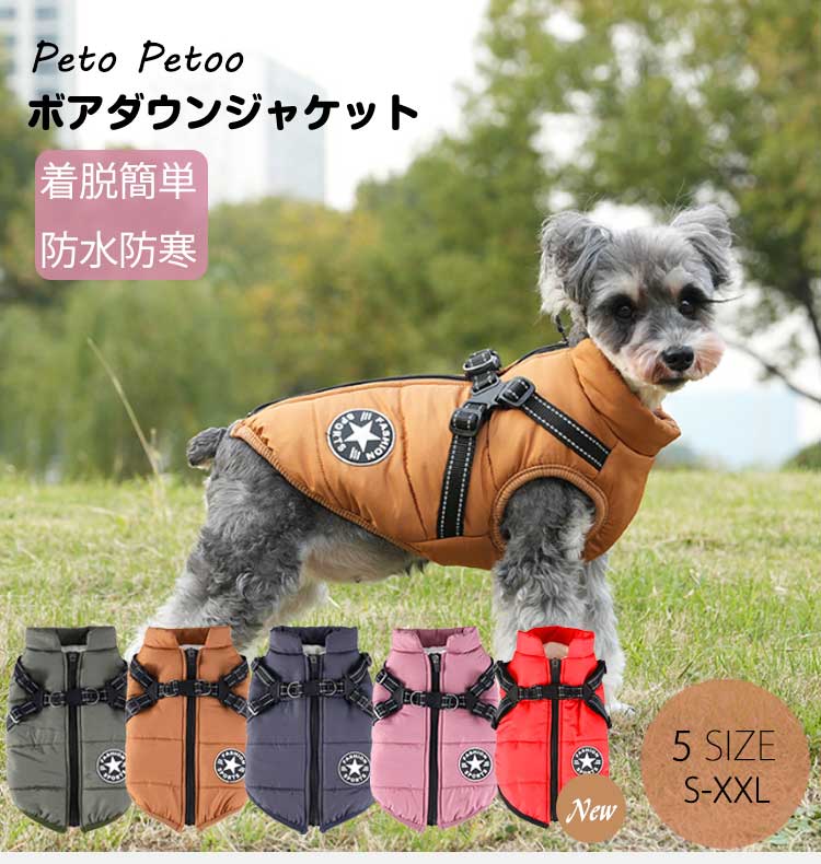 犬洋服 防水 ジャケット ドッグウェア 裏ボア ダウンベスト風ジャケット 犬服 リードリングあ 防寒 袖なし 冬 パーカー ふわふわ