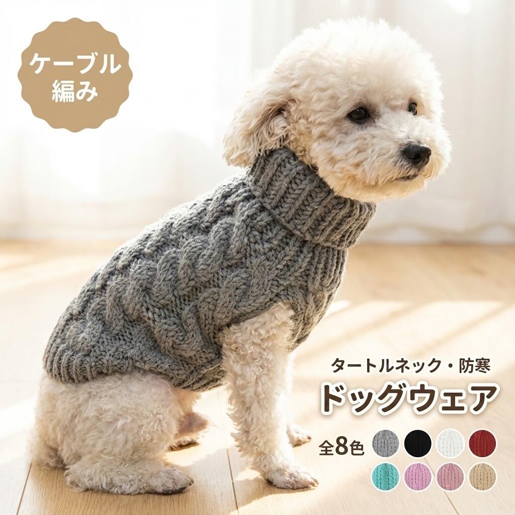 犬服 セーター タートルネック 秋冬用 防寒 暖かい ケーブル編 ニット 袖なし 小型犬用 中型犬用 おしゃれ ペットウェア 室内用 散歩用 可愛い