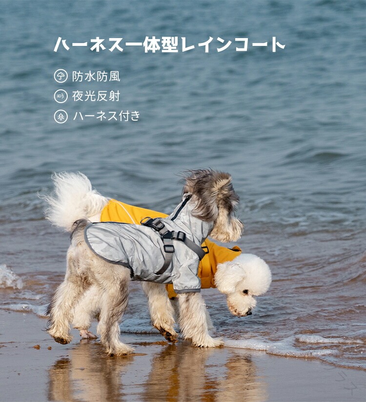 撥水性と防風機能で雨の日も快適 小型犬から中型犬まで対応 着脱簡単でおしゃれな夜光反射付きレインコート
