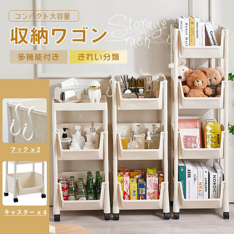 多層大容量ワゴン PP素材 収納ワゴン キャスター付き 取付簡単 移動でき収納スペース フック付き 多機能付き 3段 4段 頂上部2式 蓋式 U型式 収納ラック 隙間収納 おしゃれ 整理整頓 オ 北欧