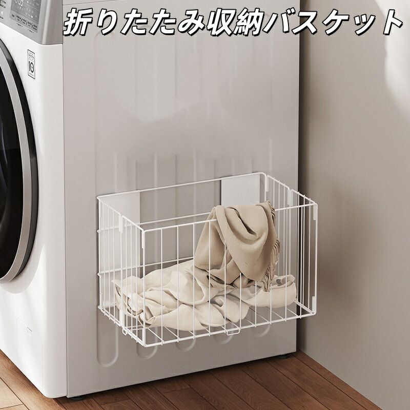 マグネット式 折りたたみ収納バスケット 洗濯機横 吸着