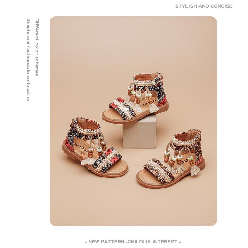 サンダル 女の子 エスニックサンダル タッセル バックジッパー