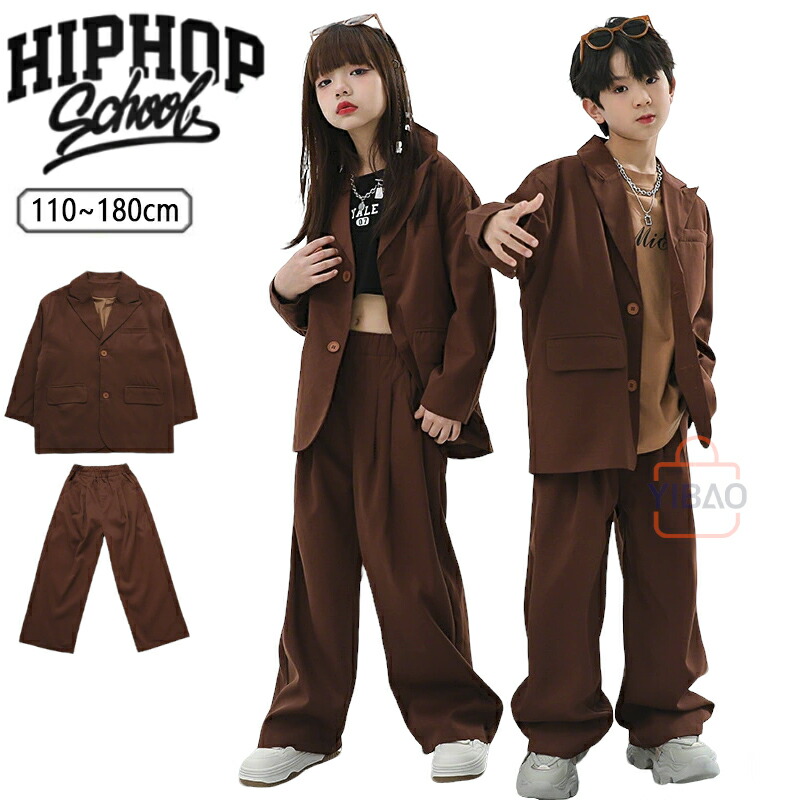 茶色 ダンス衣装 スーツ キッズ パンツセット カジュアルスーツ 子供服 ブラウン キッズダンス衣装 セットアップ ジャケット 長袖 ズボン ウエストゴム 衣装 ヒップホップ 男の子 ダンス