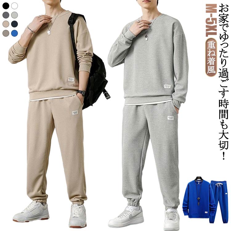 寝巻き メンズ パジャマ 春 ロングパンツ セットアップ スウェット 長袖 トレーナー カットソー 長ズボン 春秋冬 運動着 重ね着風 部屋着 ルームウエア 春服 上下セット