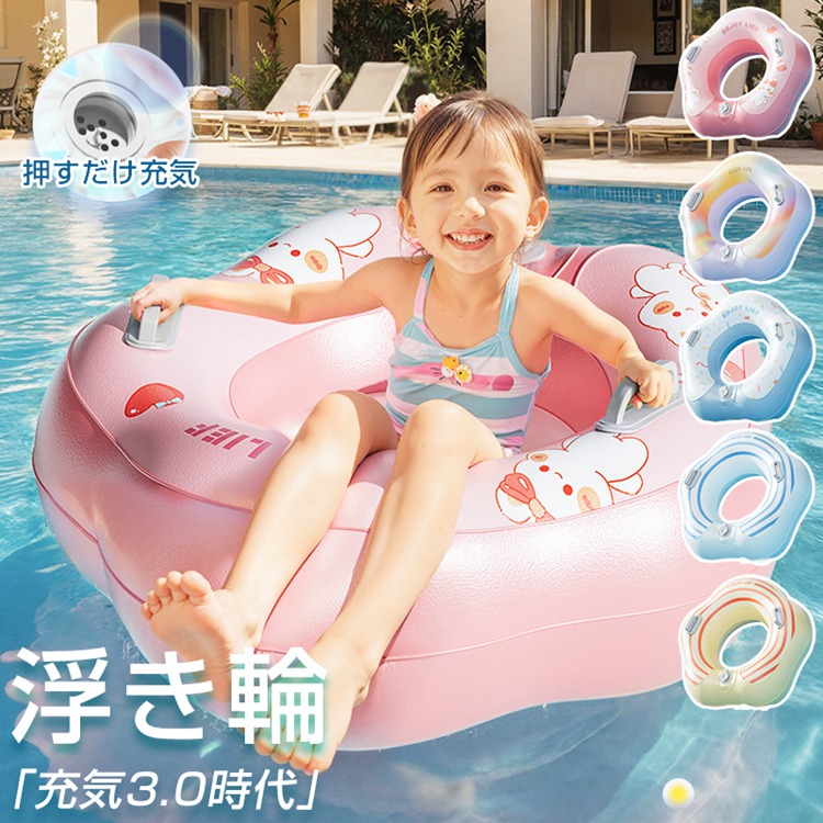 ワンタッチ自動膨張タイプ 浮き輪 大人 子供 浮輪 空気入れ不要 取っ手付 ウキワ 海 海水浴 ビックフロート 水上 レジャー かわいい 旅行 アウト 水遊び 水あそび
