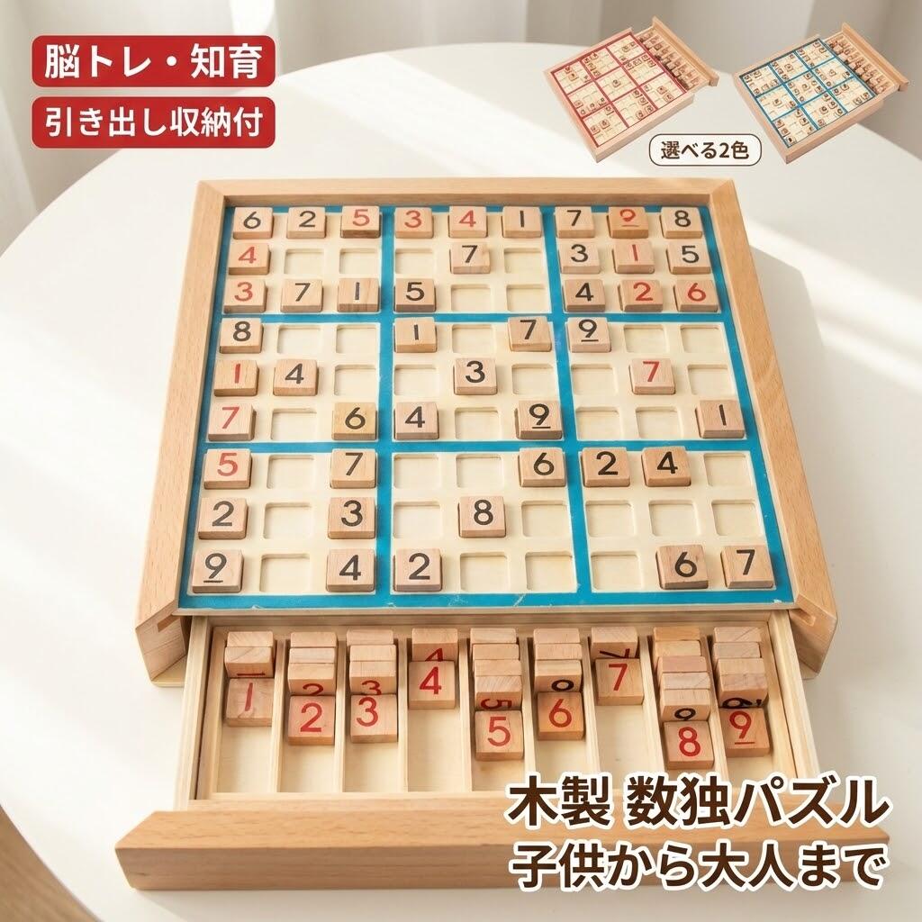 知育玩具 脳トレ 中級 数独 ナンバープレース 卓上 初級 引き出し 木製数独 パズルボードゲーム ナンプレ 木の知育玩具 9ブロック 繰り返し 脳トレボード 木製 数字 活脳 子 上級