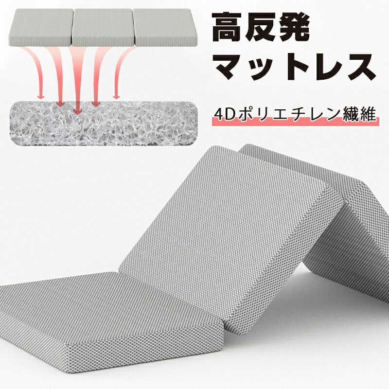 高反発マットレス 敷布団 三つ折り 洗える 厚さ5cm 4Dポリエチレン繊維構造 通気性 折りたたみマットレス シングル ダブル対応 客室用 寝室用 セミダブル