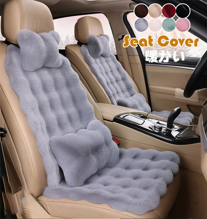 シートカバー 座席カバー 背マット 車座布団 車イスカバー クマ柄 ウサギ柄 ボア 通気 可愛い 暖かい ふわふわ 秋冬 運転席 助手席 前部座席 後部座席 腰枕 腰クッション 春 秋 冬 四季 夏