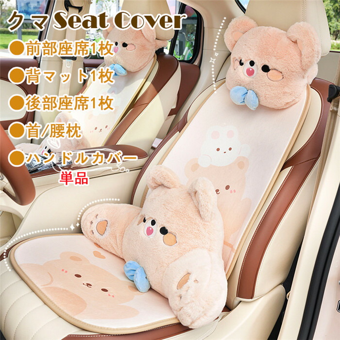 シートカバー 座席カバー 背マット 車座布団 車イスカバー ハンドルカバー ステアリングカバー クマ柄 短いボア 通気 可愛い ふわふわ 運転席 助手席 前部座席 首枕 首クッション 腰クッ 後部座席