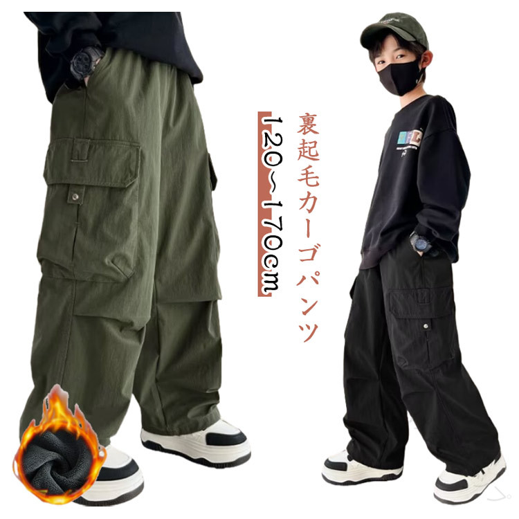 キッズ 裏フリース カーゴパンツ 男の子 あったか 裏起毛パンツ ダンス 衣装 女の子 秋冬 防寒 ワイドパンツ 子供服 おしゃれ ポケット 長ズボン ロングパンツ ゆったり 無地 韓国 ウエストゴム