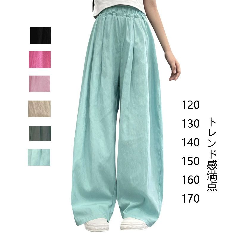女の子 長ズボン 夏 涼しい パンツ ワイドレッグパンツ 全6色 爽
