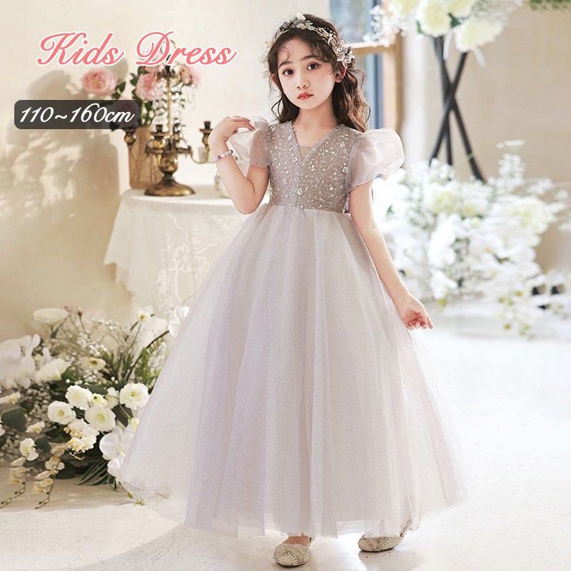 キッズドレス 130 発表会 結婚式 半袖 子供用 パーティードレス