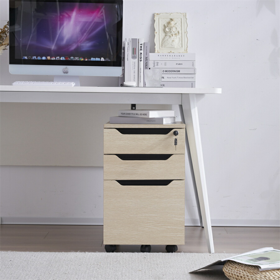 デスクワゴン サイドワゴン ラック鍵付き キャスター付き オフィスオフィス収納 ファイルワゴン 脇机