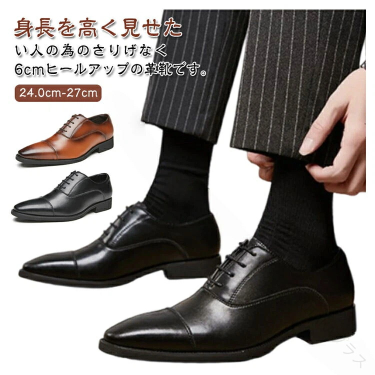 シークレットシューズ メンズ ビジネスシューズ 革靴 ポインテッドトゥ 6cmアップ インヒール 紳士靴 レースアップ 疲れない 走れる シークレット革靴 背が高くなる靴 フォーマル 結婚 身長アップ