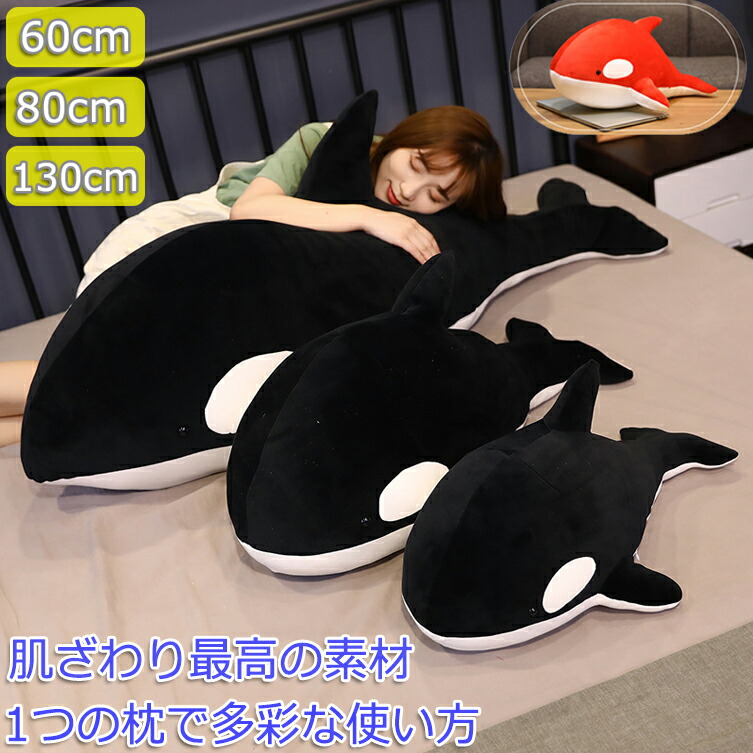 ぬいぐるみ シャチ 海洋動物 抱き枕クッション 柔らかふわふわ ブラック レッド 60cm 80cm 130cm 昼寝用 癒しグッズ 誕生日クリスマスプレゼント 記念日贈り物 彼女友達へのお祝 子供用