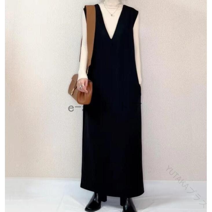ジャンパースカート ロングワンピース コールテン サロペット ワンピ チュニック きれいめ ドレス プルオーバー 大人 春秋 膝下丈 袖なし ゆったりトップス 通勤 20代30代40代 無 レディース