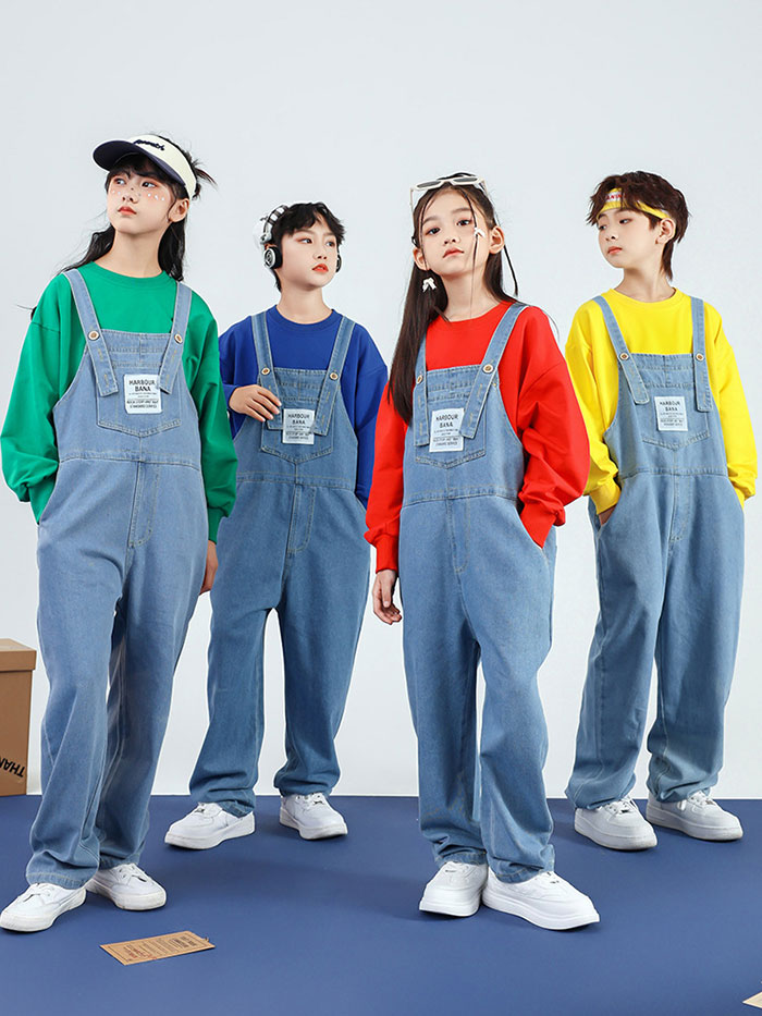 キッズ 子供用 衣装 ダンス おしゃれ デニム サロペット オーバーオール ヒップ ホップ 男の子 女の子 ジュニア ダンス衣装 ジャズ 発表会 ガールズ HIPHO 服