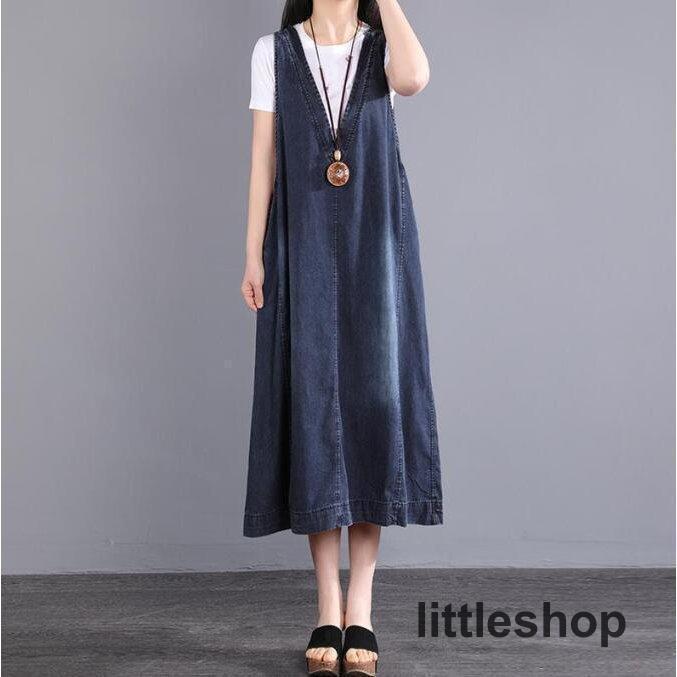 デニム ジャンパースカート ジャンスカ ダブルストラップ サロペット レディース デニムサロペットスカート 細ストラップ サロペットワンピース ミモレ丈 ゆったり 体型カバー 春夏秋冬 膝下丈