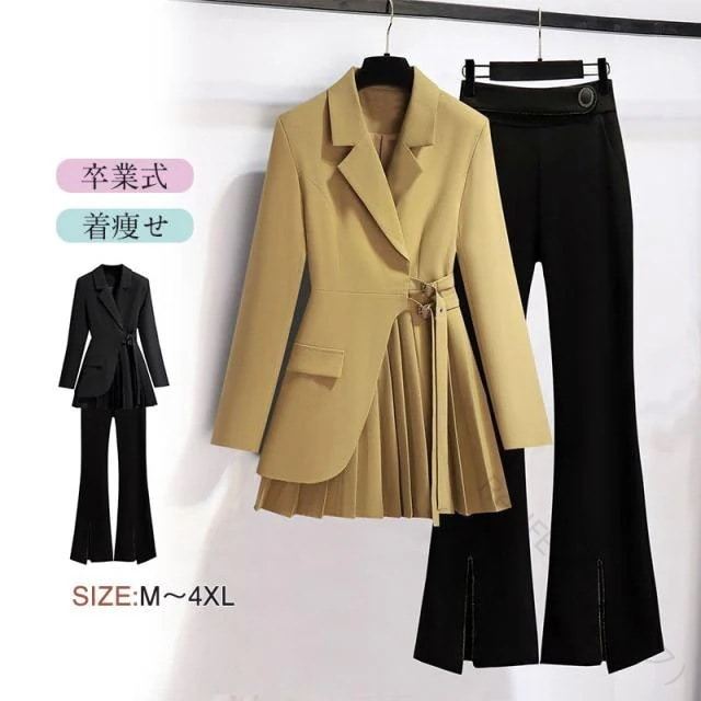 上下セットアップ フォーマル パンツスーツ 入園式 入学式 卒園式 ママ ビジネス 結婚式 パーティー 着痩せ 体型カバー 大人女性向け 二次会