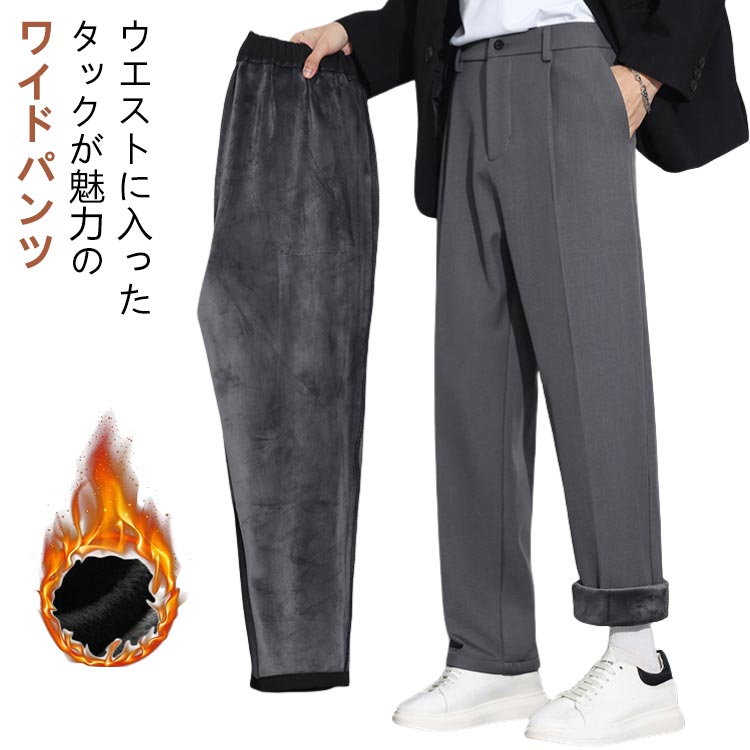 スラ ワイド 防寒 冬用 カジュアル 保温 裏起毛 ワンタック 秋冬 センタープレス メンズ カジュアルパンツ スーツパンツ 暖かい