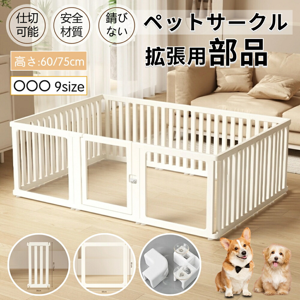 拡張 増設用 ペットサークル ドア付き 犬 サークル 透明 クリア アクリル ペットケージ サークルケージ ペットフェンス 檻感がない 自由に組み合わせ 高さ60cm 75cm 小型犬 フェンス