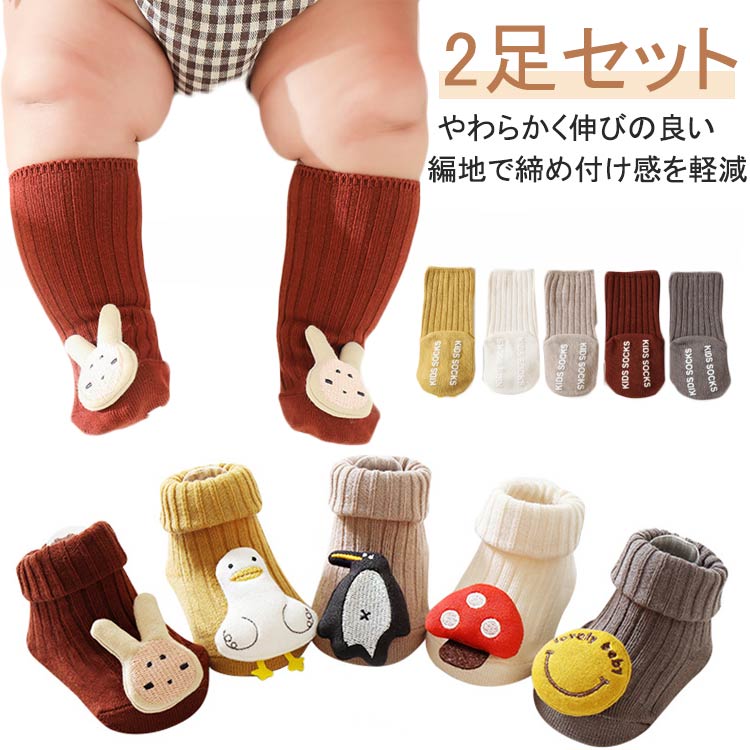 2足セット 子供用靴下 コットン 動物 ベビー アヒル ウサギ ソックス 滑り止め付き キッズ ギフト アニマル 靴下 赤ちゃん あかちゃん ベビーソックス 女の子 ベビー用品 新 男の子