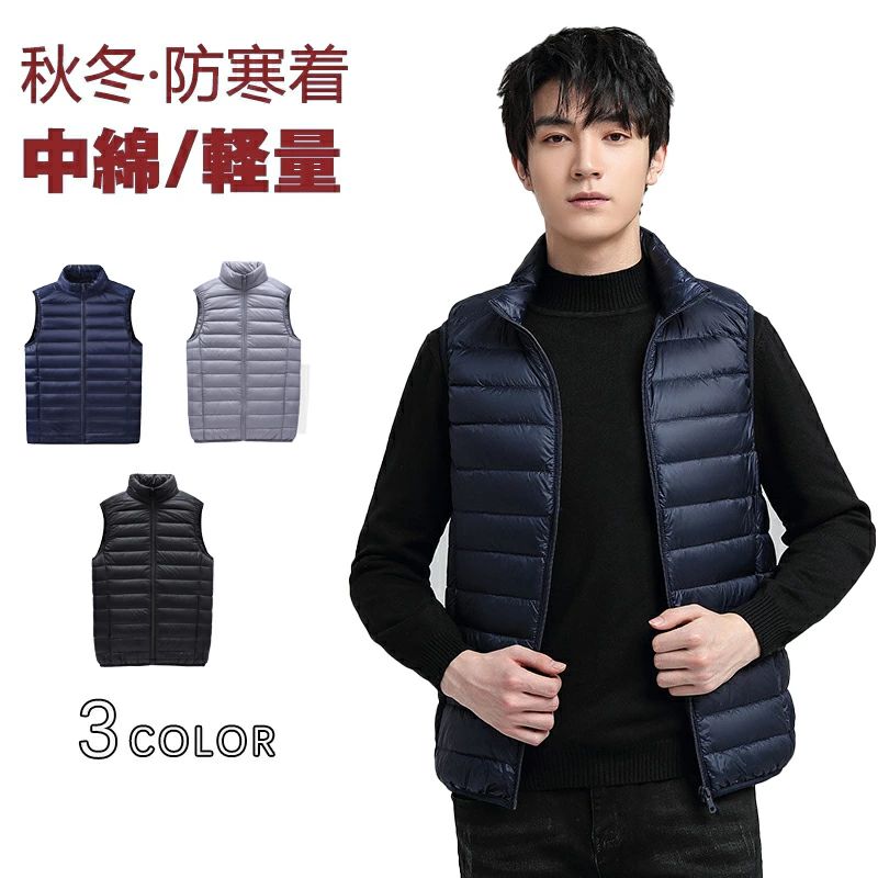 ダウンベスト ダウンジャケット メンズ 大きいサイズ 軽量 スタンドカラー ライトダウン ジャケット 防寒 あったか 暖かい インナーダウン 薄手 アウター ダウン 保温 黒 キャンプ ブルゾン