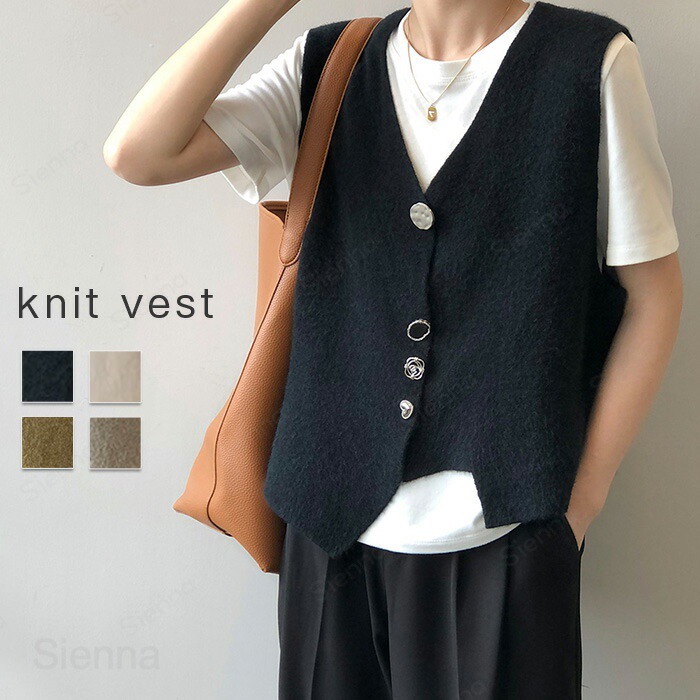 ニット ベスト レディース トップス ジレ 羽織 前開き vネック きれいめ ボタン ボタン付き チョッキ ボレロ ノースリーブ 袖なし 秋アウター レイヤード シンプル イレヘム丈 前後丈 ゆったり