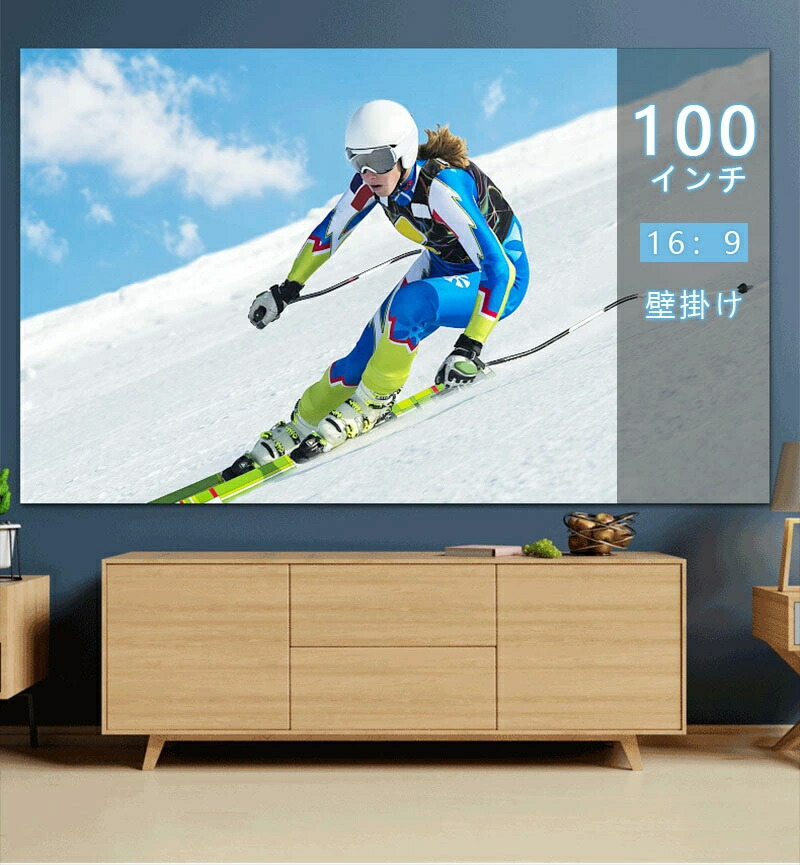 プロジェクター スクリーン 100インチ 壁掛け インテリア 16:9 1080p ホームシアター 折り畳み可能 高吸水性 ビジネス会議 学校 しわにくい 映画