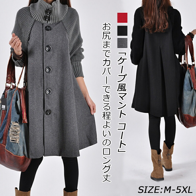 異素材 マント ケープ コート レディース 大きいサイズ