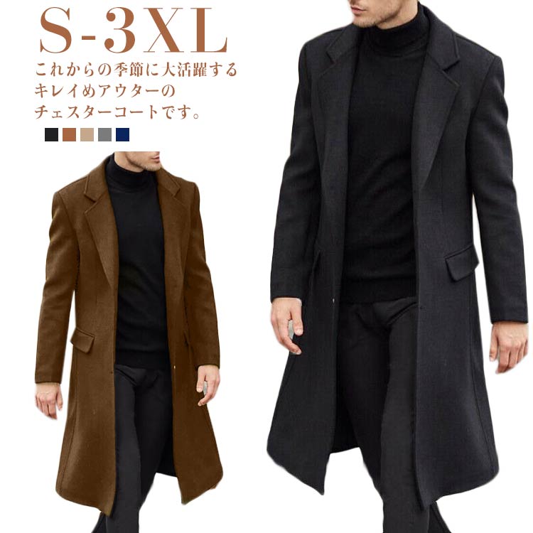 大きいサイズ チェスターコート 上品 ロングコート ビジネスコート メンズ アウター 通勤 ポケット付き スプリングコート 防寒 細身 スリム 暖かい ウール調コート