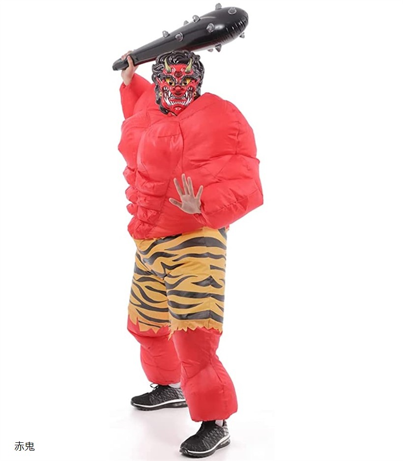 節分 デラックス ムキムキ 鬼 風船型 衣装 コスチューム お面 金棒 セット 赤鬼 変装 仮装 ホビー コスプレ