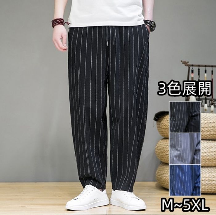 サルエルパンツ メンズ 大きいサイズ ワイドパンツ パンツ リネンパンツ ボトムス ストライプ 夏新作 ワークパンツ